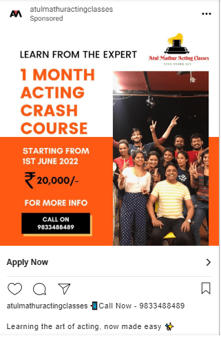 Atul already had a Facebook and Instagram page for his acting classes, but we helped him keep his social media feed active by regularly creating creatives.