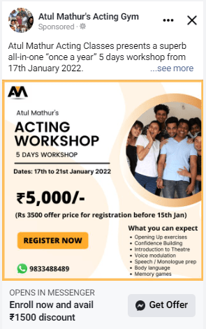 The campaigns for Atul Mathur’s Acting Classes resulted in obtaining 390 leads from potential acting students in Mumbai.